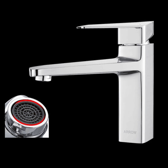 ARROW bath design mixer wash bathroom basin faucet taps feature modern waterfall single handle design with brass construction and ceramic valve core. Backed by a 5-year warranty for reliable performance.